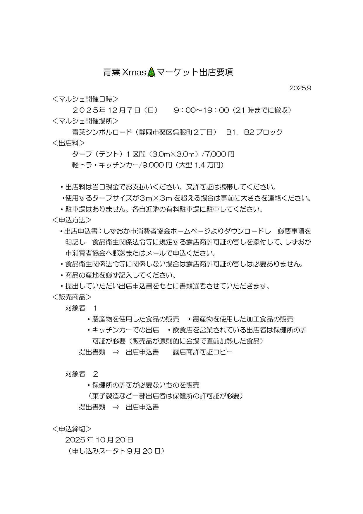 - 2025-09-1612月7日 青葉クリスマス マーケット開催予定 出店者募集中