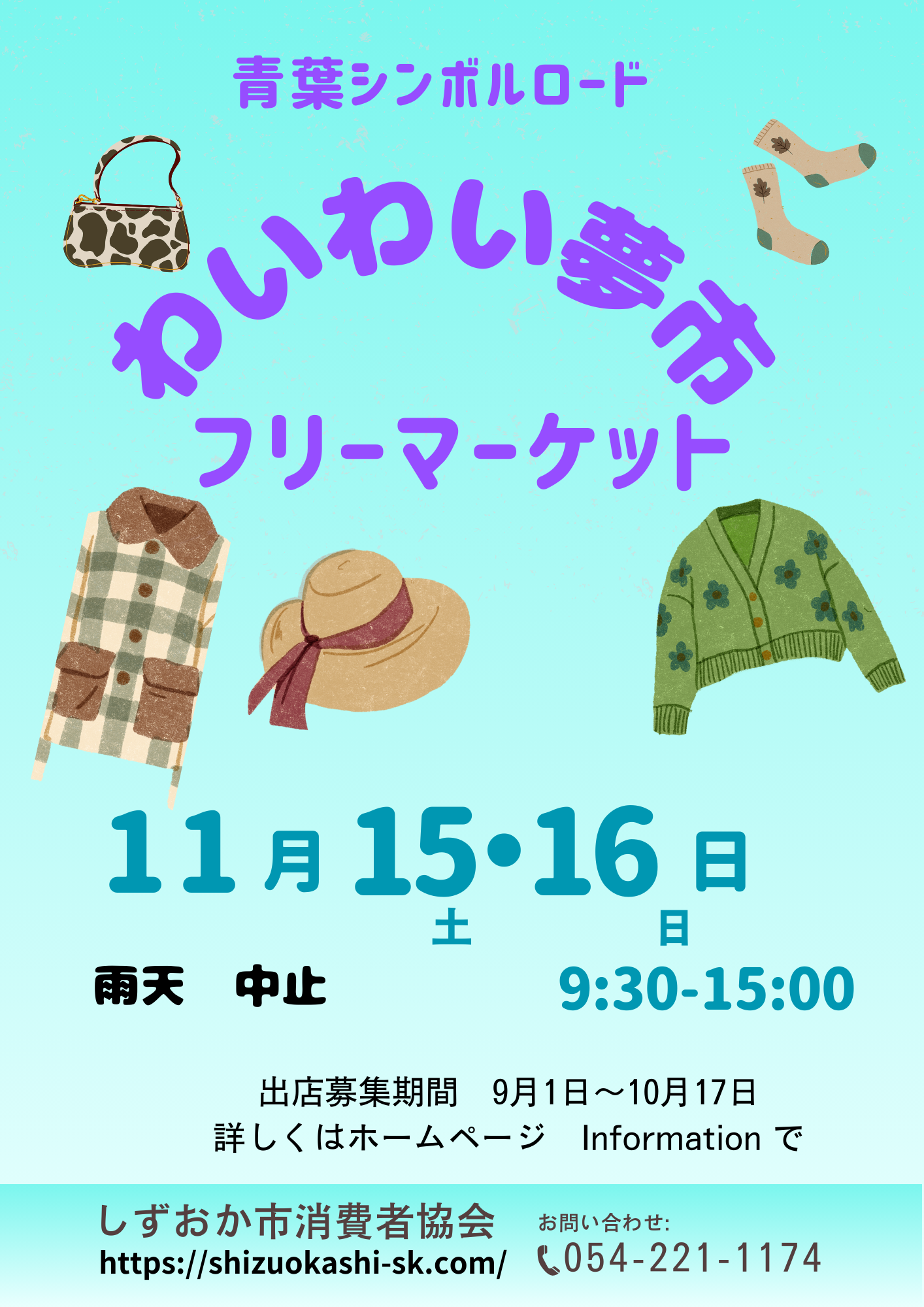 - 2025-09-2911/15・16わいわい夢市フリーマーケットの出店者 募集中 10月17日まで。