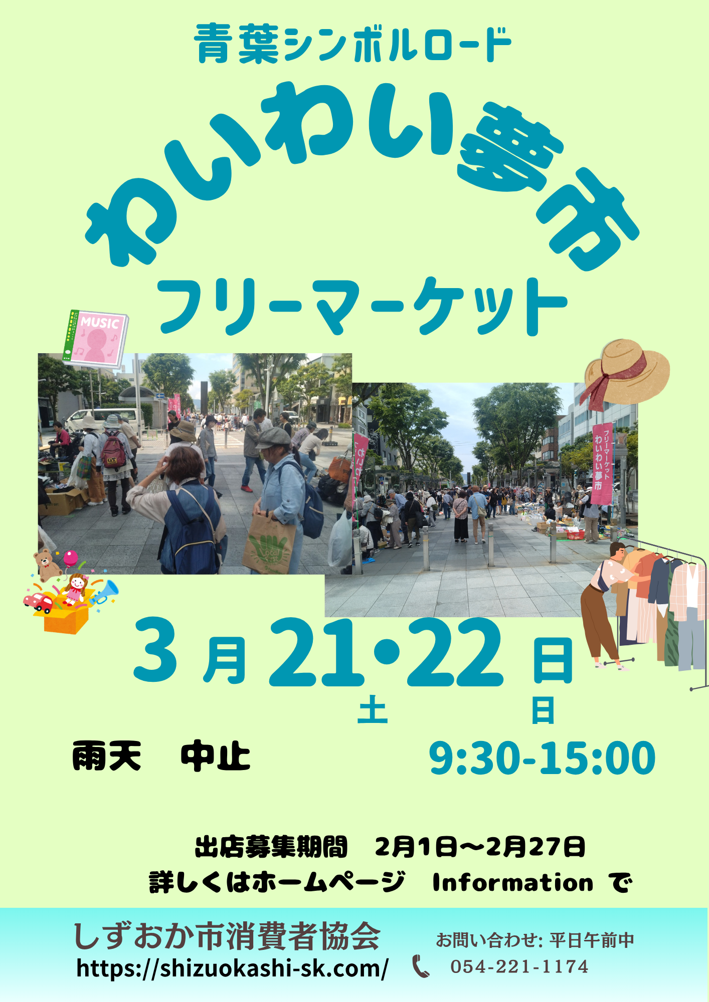 - 2026-01-14わいわい夢市フリーマーケットを3月21・22日に開催いたします。